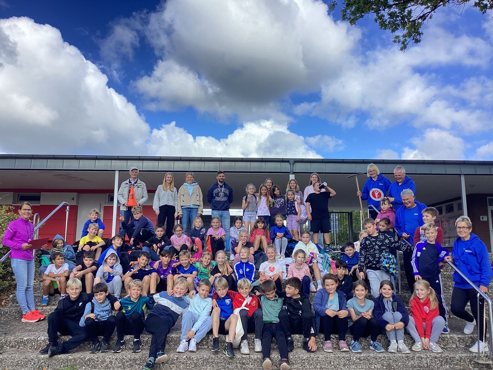 Bei herbstlich trockenem Wetter absolvierte am Donnerstag, 26.09.24 der 3.Jg die verschiedenen Disziplinen für das Sportabzeichen. Rund 50 Kinder erprobten sich aufgeregt und motiviert im 30m-Sprint, 80g-Schlagballweitwurf, Zonenweitsprung und 800m-Ausdauerlauf. Frau Sandmann, Frau Böhm und Frau Barz begleiteten die Kinder dabei im Cronsbachstadion. Unterstützung vor Ort war wieder optimal gegeben durch die fünf Sporthelfer und -helferinnen vom SteinGym sowie dem Sportring Steinhagen. Nun drücken wir die Daumen, dass das Wetter auch am kommenden Mittwoch für den 4Jg. mitspielt.